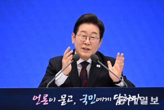 이재명 대통령이 3일 서울 종로구 청와대 영빈관에서 열린 취임 첫 공식 기자회견 ‘대통령의 30일, 언론이 묻고 국민에게 답하다’에 참석해 기자 질문에 답변하고 있다. 송은석 기자 silverstone@donga.com |