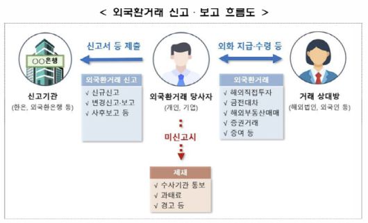 금융감독원 관계자는 "외국환거래당사자는 해외직접투자 등 외국환거래를 신규로 하거나, 기존 거래내용의 변경이 있는 경우 등에는 신고기관에 신고·보고를 이행할 것"이라고 강조했다.