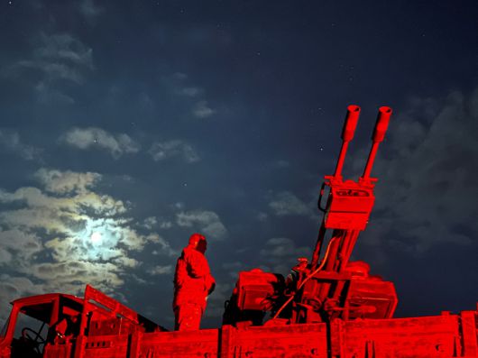 1일(현지시간) 우크라이나 하르키우 지역에서 기동방공부대 군인들이 야간 근무 중 대공포를 준비하고 있다. |