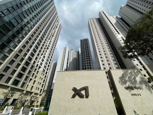 입구를 감싸는 거대한 석재 마감 게이트는 단지의 위용을 드러낸다. 연회색 톤은 자칫 밋밋할 수 있는 입면에 단정한 고급미를 더하고, '자이(XI)' 로고만 남긴 미니멀한 디자인은 절제된 품격을 표현한다.