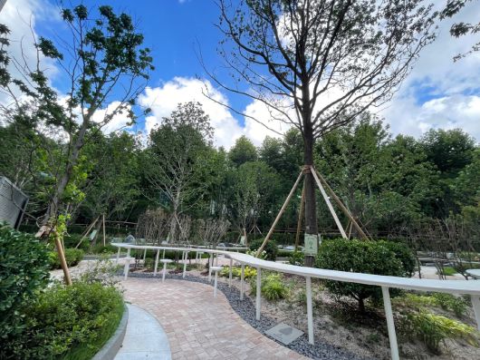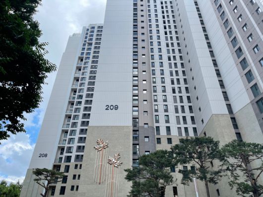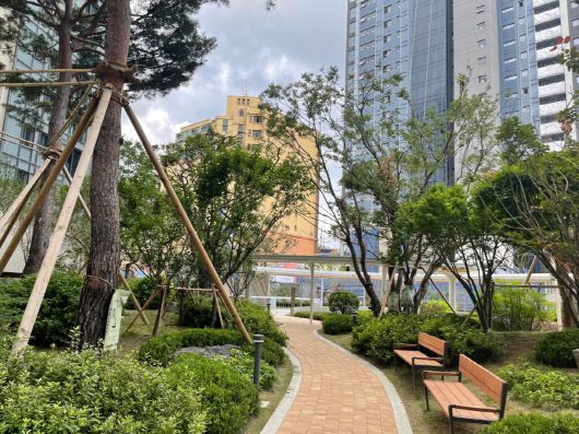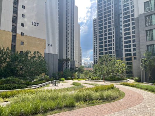 GS건설이 시공한 메이플자이는 지하 4층~지상 최고 35층, 29개 동, 전용면적 43㎡~165㎡ 총 3307가구로 구성됐다. 단지로 들어가니 메이플자이만의 조경이 눈에 띄었다.