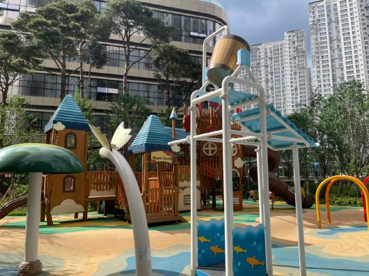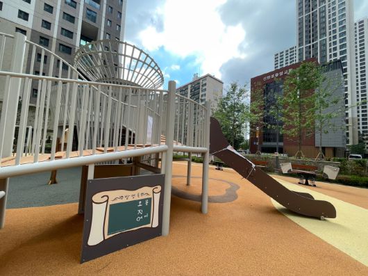 아이들이 즐길 수 있는 놀이터도 하나의 조경으로, 다양한 테마를 구상해 섬세하게 꾸며냈다. '바람 따라 둥지에 놀러 온 종달새'는 윙윙 부는 바람을 따라 이웃 둥지에 놀러 온 종달새를 테마로 했다. 바람의 자유로운 곡선을 형상화한 호기심을 자극하는 놀이터다.
