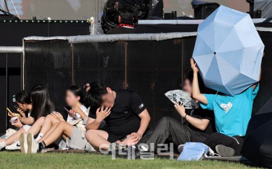 폭염이 연일 계속된 지난 2일 대구 달서구 두류공원 2.28 자유광장에서 열린 ‘2025 대구 치맥 페스티벌‘에서 한 관람객이 양산으로 햇빛을 가린 채 앉아 쉬고 있다.(사진=뉴시스) |