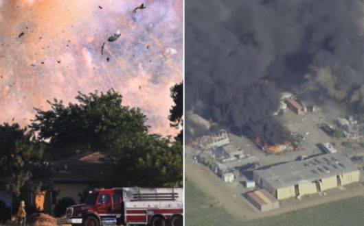 지난 1일 캘리포니아주 새크라멘토 외곽의 한 폭죽 창고에서 폭발이 발생했다. 현지 뉴스 영상 캡처 |