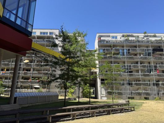 하나의 필지 안에서 세 곳의 건축사무소가 각각 주거동은 따로 설계하고, 공동 시설은 협업해 디자인했다. 이후 각 동을 노란색 다리로 연결해 하나의 유기적 단지로 완성했다. 덕분에 회색 벌집 형태의 건물과 붉은색 건물이 서로 다른 외관을 가지면서도, 하나의 도시처럼 기능한다. 단지 내에는 유치원, 암벽장, 수영장, 목공실 등 다양한 공동 시설이 자리 잡고 있으며, 이들은 모두 ‘거실’의 개념으로 주민들에게 제공된다. 단순히 저렴한 임대주택이 아니라, 공공이 기획하고 설계한 도시 공동체인 셈이다.