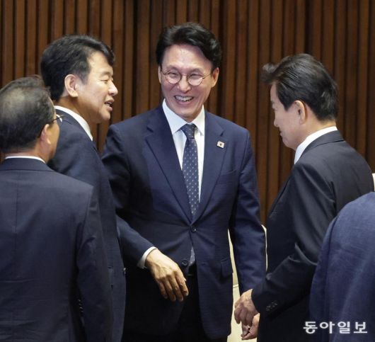 3일 서울 여의도 국회에서 열린 제426회 국회(임시회) 제4차 본회의에서 김민석 국무총리 후보자가 우원식 의장과 악수하고 있다. 2025.07.03 이훈구 기자 ufo@donga.com |