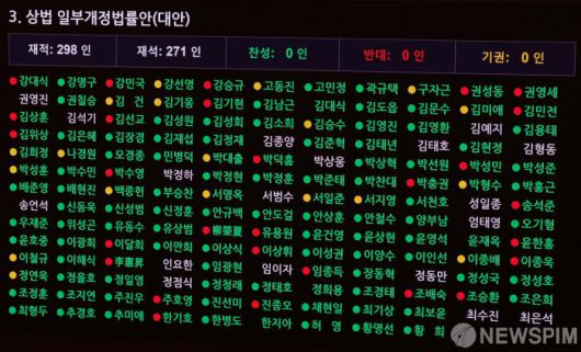 [서울=뉴스핌] 윤창빈 기자 = 3일 오후 서울 여의도 국회에서 열린 본회의에서 상법 일부개정법률안(대안)에 대한 표결이 진행되고 있다. 2025.07.03 pangbin@newspim.com |