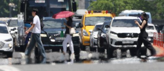 폭염특보가 발효 중인 2일 울산시 남구 한 도로 위로 지열로 인한 아지랑이가 피어오르고 있다.(사진=연합뉴스) |