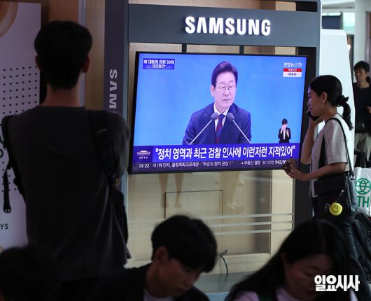 3일 서울 용산구 서울역 대합실에서 시민들이 이재명 대통령의 취임 30일 기자회견 생중계를 지켜보고 있다. ⓒ문경덕 기자 |