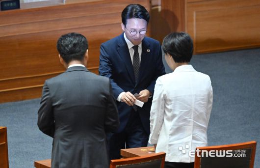 제426회 국회(임시회) 제4차 본회의가 3일 서울 여의도 국회 본회의장에서 열렸다. 국무총리 후보자로 지명된 김민석 더불어민주당 의원이 총리 임명동의안 무기명 투표에 참여하고 있다. 이동근기자 foto@etnews.com [Copyright © 전자신문. 무단전재-재배포금지]