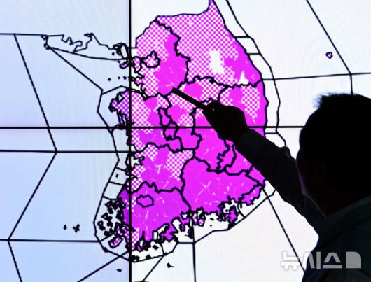 [수원=뉴시스] 김종택 기자 = 전국 대부분 지역에 폭염특보가 발효된 3일 경기 수원시 수도권기상청에서 예보관이 폭염 상황을 모니터링 하고 있다. 2025.07.03. jtk@newsis.com |