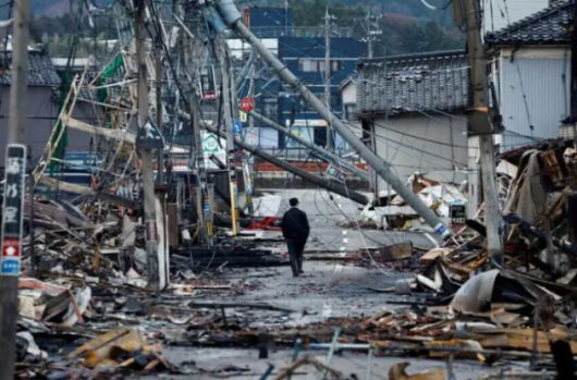지난해 대규모 지진이 발생한 일본 노토반도에서 한 남성이 거리를 걸어가고 있다. [사진=로이터/연합뉴스] |
