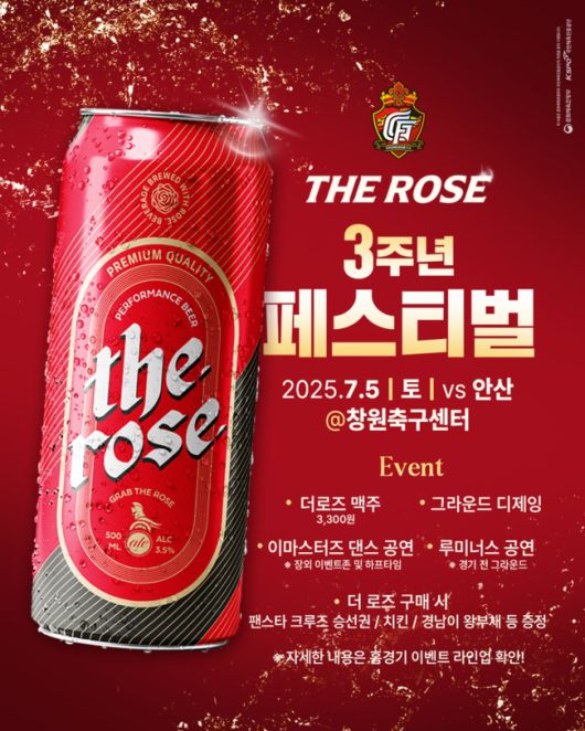 이날 홈경기에서는 오직 경남FC 홈구장에서만 접할 수 있는 더 로즈 맥주를 할인된 3,300원에 판매한다. 또한, 더 로즈 구매자를 대상으로 팬스타 크루즈 승선권, 치킨, 마스코트 왕부채 등 여름 분위기에 맞는 상품을 제공한다.