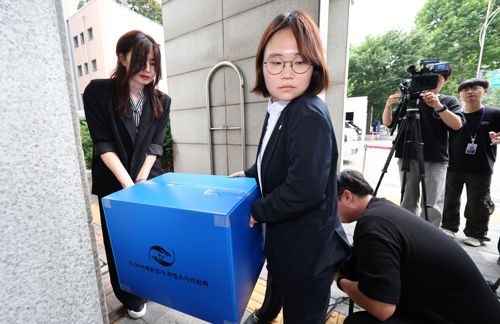 10·29 이태원 참사 진상규명과 재발방지를 위한 특별조사위원회가 3일 서울 마포구 서울서부지방검찰청에서 서부지검으로부터 제공받은 참사 관련 불기소 처분 수사기록 자료를 수령한 뒤 옮기고 있다. 2025.7.3[연합뉴스 제공] |