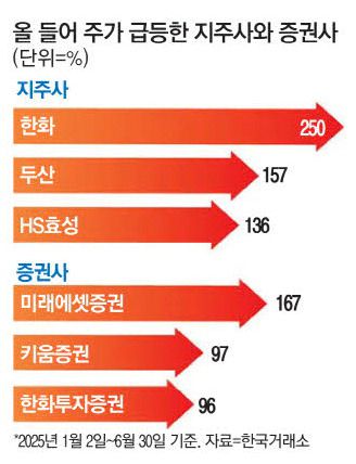 상반기 들어 새 정부 출범과 함께 상법 개정안 통과에 대한 기대감이 높아지며 가장 큰 폭으로 상승한 업종은 지주사와 증권사다.