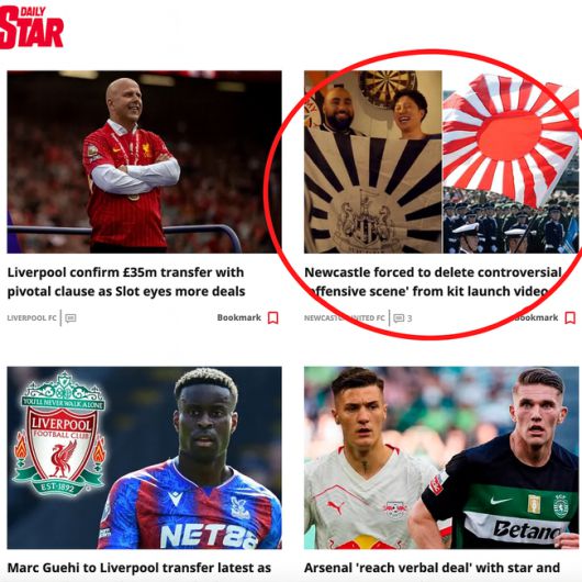 '더선'은 “뉴캐슬이 일본 군국주의를 상징하는 욱일기를 유니폼 홍보에 사용했다. 역사적으로 상처가 있는 한국, 중국, 싱가포르, 러시아 등에선 해당 깃발이 금지돼 있다”고 지적했다.