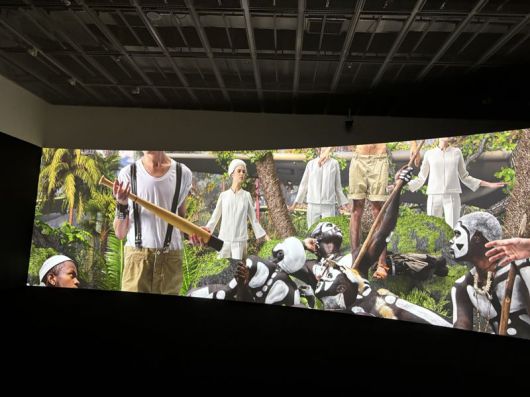 울산시립미술관 기획전시 '낯선 코드'를 통해 선보이고 있는 AES+F의 3채널 영상 작품 '신성한 우화' |
