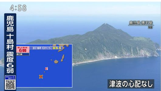 [이데일리 양지윤 기자] 일본 규슈 가고시마현 도카라 열도에서 3일 오후 4시13분께 규모 5.5의 지진이 발생했다고 일본 공영방송 NHK가 보도했다.