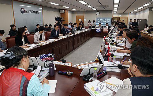내년 최저임금은(세종=연합뉴스) 배재만 기자 = 3일 정부세종청사에서 열린 최저임금위원회 제9차 전원회의. 2025.7.3 scoop@yna.co.kr ▶제보는 카카오톡 okjebo▶연합뉴스 앱 지금 바로 다운받기~▶네이버 연합뉴스 채널 구독하기<저작권자(c) 연합뉴스, 무단 전재-재배포, AI 학습 및 활용 금지>