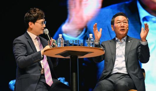 유정복 인천광역시장이 3일 인천글로벌캠퍼스에서 열린 '민선8기 3주년 기념 정책공감 직원소통 Day'에서 정책공감 특강을 하고 있다. [사진=인천시] |
