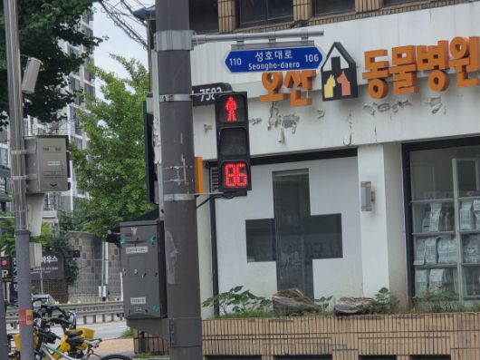 '보행신호등 적색 잔여시간 표시기'는 기존 보행자용 신호등이 초록불(통행 가능 시간)만을 표시하던 것과 달리, 빨간불 대기 시간도 초 단위로 안내해주는 장치입니다.