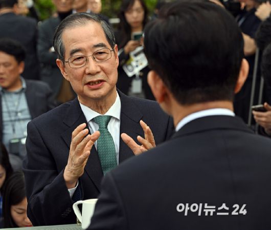 김문수 국민의힘 대통령 후보와 한덕수 무소속 대선 예비후보가 8일 오후 서울 여의도 국회 강변서재에서 후보 단일화 관련 회동을 하고 있다. [사진=곽영래 기자] |