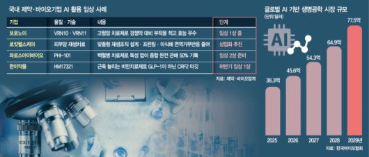 이외에도 최근 파로스아이바이오(388870)가 AI 플랫폼 ‘케미버스’ 기반 도출 백혈병 신약 후보물질 임상 1b상에서 용량 제한 독성 없이 종합 완전 관해 50% 기록해 임상 2상을 준비하고 있다. 한미약품(128940)도 자체 AI 기반 약물 설계 플랫폼을 활용해 개발한 신약 후보물질 ‘HM17321’에 대해 올 하반기 임상 1상을 개시할 계획이다.