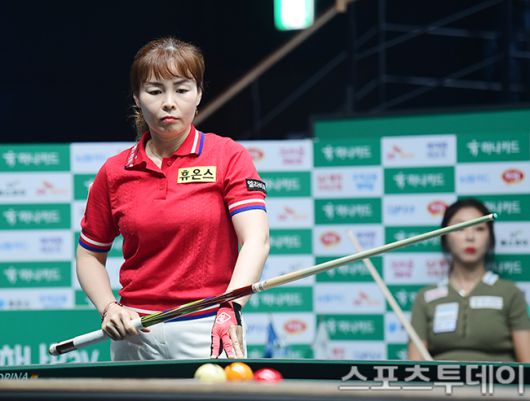 [고양(경기)=스포츠투데이 권광일 기자] 2025-2026 시즌 LPBA 2차 투어 '하나카드 LPBA 챔피언십' 16강전 경기가 3일 경기 고양시 킨텍스 PBA스타디움에서 열렸다. 이신영이 16강전 경기에서 샷을 하고 있다. 2025.07.03. [스포츠투데이 권광일 기자 sports@stoo.com]