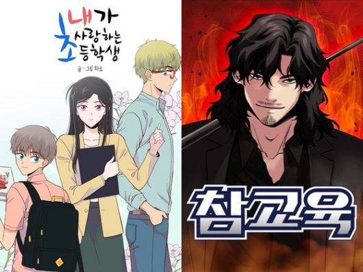 웹툰 '내가 사랑하는 초등학생'과 '참교육' 커버 이미지. |