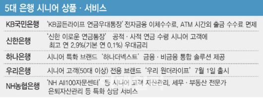 금융권 한 관계자는 “고령 인구가 계속 증가하는 가운데 이들이 받는 공적·사적 연금은 ‘제2의 월급’으로 규모가 계속 커지고 있어 은행으로선 놓칠 수 없는 시장”이라며 “연금과 함께 시니어 고객이 보유한 자산 관리나 역모기론 등 관련 상품·서비스가 계속 이어질 것”이라고 말했다.