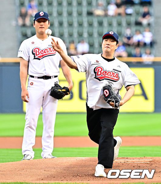 [OSEN=잠실, 지형준 기자] 3일 오후 서울 잠실구장에서 ‘2025 신한 SOL Bank KBO리그’ 두산 베어스와 삼성 라이온즈의 경기가 열렸다. 두산은 곽빈, 삼성은 최원태가 선발로 나섰다. 배성재 아나운서가 시구를 하고 있다. 2025.07.03 /jpnews@osen.co.kr