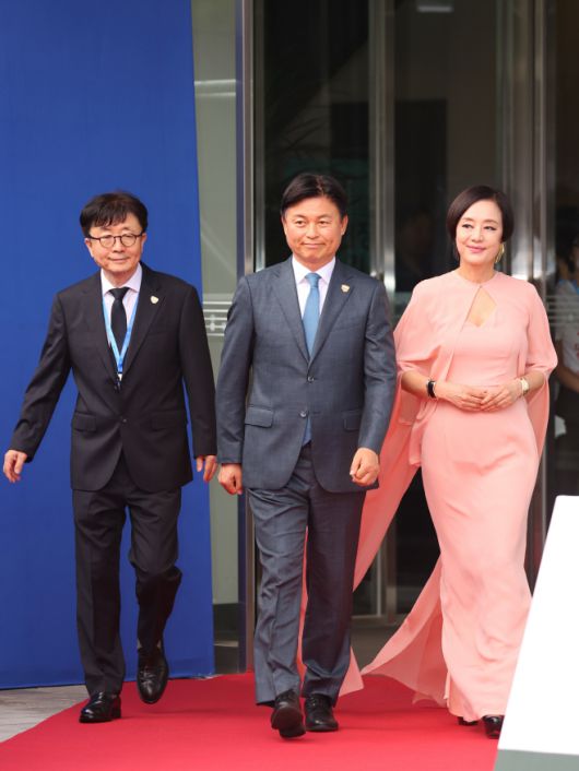 신철 부천국제판타스틱영화제(BIFAN) 집행위원장(맨 왼쪽부터)과 조용익 부천시장 겸 공동 조직위원장, 장미희 조직위원장이 3일 경기도 부천시청 잔디광장에서 열린 제29회 영화제 개막식에 앞서 레드카펫을 걷고 있다./연합뉴스 |