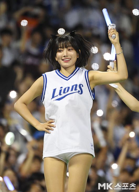 삼성 박소영 치어리더가 응원을 하고 있다.