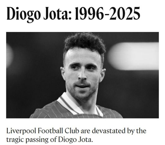 리버풀 구단도 공식 성명을 통해 "디오고 조타의 비극적인 소식에 깊은 슬픔을 느낀다"며 "그를 사랑했던 팬들과 동료, 구단 전체가 큰 상실을 겪었다"고 밝혔다. 안필드 홈구장에는 조타를 추모하는 팬들의 꽃과 메시지가 잇따랐다.