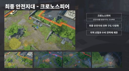 최종 안전지대도 변경된다. 이전에는 지역마다 정해진 지점에서 일명 '막금구 싸움'을 진행했는데 이제는 '크로노스피어'라는 명칭으로 최종 안전지대가 지속적으로 움직인다. 지역을 미리 선점해 두고 수비적인 전략에 제한을 두는 방식이다.