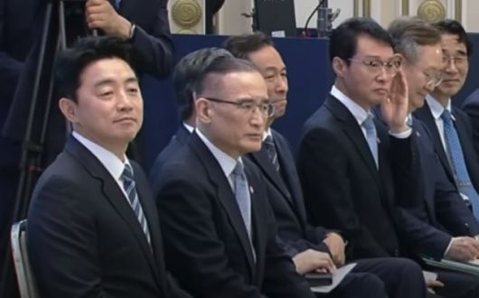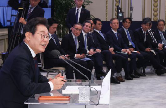 이재명 대통령이 취임 한 달을 맞아 연 기자회견에서 당시 생중계 화면에 잡힌 참모진의 표정이 화제를 낳고 있다.