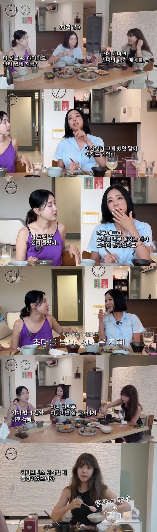 채정안 역시 이혼을 경험한 바, 이혜영은 "너 돌아온건 사람들이 잘 몰랐다 사실"이라고 말했고, 이지혜도 "말 안 하면 싱글인 줄 안다"고 공감했다.