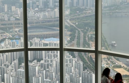 내 집은 어디에 3일 서울 송파구 롯데월드타워에서 내려다본 잠실 일대가 아파트로 빼곡하다. 연합뉴스 |