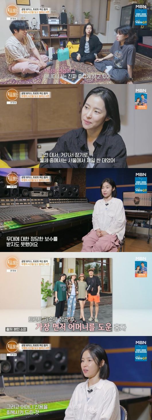이후 삼남매가 본격적으로 매니저와 가수로 동행을 시작하게 됐다고. 홍자는 “데뷔하고 무명은 8년 정도였다. 30만원 줄게 30분 노래 해달라고 해서 가서 무대 하고 내려오면 수고했다 그냥 가라고 하더라. 무대에 대한 정당한 보수를 받지 못했다. 백수생활을 해가면서 사이사이 알바를 하면서 편의점, 호프집, 커피숍 알바 정말 그냥 닥치는 대로 했다”고 당시를 회상했다.