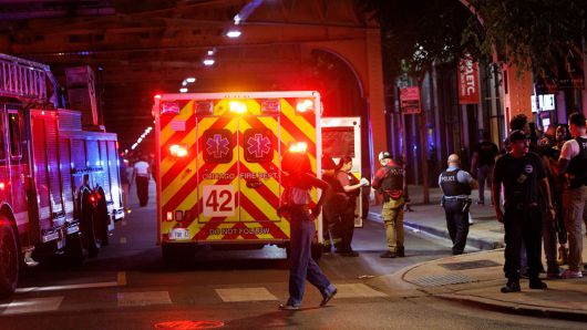 경찰에 따르면, 달리는 차량 안의 누군가가 밖에 서 있던 군중을 향해 총을 쏘고, 즉시 달아났습니다.