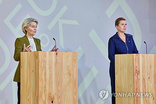 기자회견하는 EU 집행위원장과 덴마크 총리 |