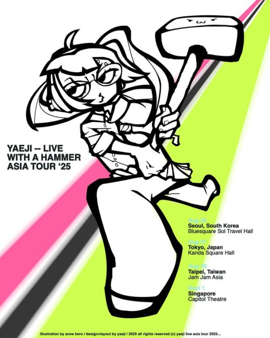 예지는 오는 8월 25일 오후 8시 서울 한남동 블루스퀘어 SOL트래블홀에서 '예지 라이브 위드 어 해머 아시아 투어 '25(YAEJI – LIVE WITH A HAMMER ASIA TOUR '25)'를 진행한다.