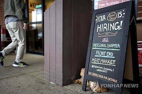 미 일리노이주 소매점의 구인 간판 |