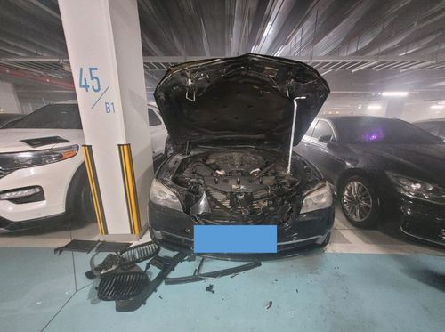 (경기 광주=연합뉴스) 권준우 기자 = 3일 오후 7시 30분께 경기 광주시 역동의 29층 아파트 지하 1층에 주차된 BMW 승용차에서 불이 났다.