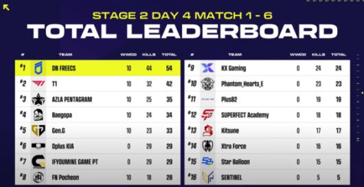 둘째날 룰은 2시간 동안 오직 킬포인트로만 순위를 결정하는 방식으로 진행됐습니다. 생존보다 더 중요한 것이 교전이었기에, 평소 공격적인 경기를 펼치는 팀이 유리한 룰이었죠.