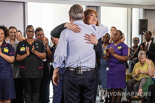3일(현지시간) 행사에서 스타머 총리와 포옹하는 리브스 장관 |