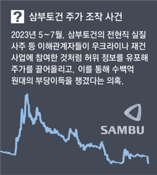 당시는 윤 전 대통령 부부가 우크라이나를 방문해 재건 사업을 논의하던 때였다. 실제 삼부토건이 폴란드에서 열린 우크라이나 재건 포럼에 참여한 뒤 2023년 5월 1000원대였던 주가가 두 달 만에 5500원까지 급등하면서 주가조작 의혹은 더욱 불거졌다.
