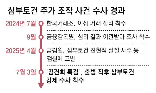 이후 금감원은 지난해 9월 주가조작 의혹 관련 조사에 착수하면서 올해 4월 삼부토건 전현직 대표이사 등을 자본시장법상 부정거래행위 금지 위반 등의 혐의로 검찰에 고발했다. 다만 당시 압수수색 등 강제수사는 이루어지지 않았고, 김 여사와 이 전 대표는 ‘부정거래 연관성이 확인되지 않았다’며 고발 대상에서 제외됐다. 고발장을 받은 검찰도 “사건의 성격과 사안의 중대성 등을 감안해 신속하게 수사가 진행될 수 있도록 장기간 관련 조사를 진행해 온 금감원에 사건을 수사 지휘했다”며 사건을 금융당국에 다시 이첩했다.