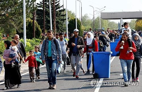2015년 9월 헝가리에서 오스트리아 국경을 향하고 있는 시리아 난민들 |