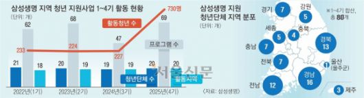삼성생명은 이 같은 청년의 탈지역 문제를 해결하기 위해 2021년부터 행정안전부, 사회연대은행과 함께 민관협력사업인 ‘지역 청년 지원사업’을 펼치고 있다. 청년들의 힘으로 지역사회의 문제를 해결해 나가며 청년 인구의 수도권 쏠림 현상을 개선하도록 지원한다는 점에서 새로운 협력 모델이란 평가를 받는다.